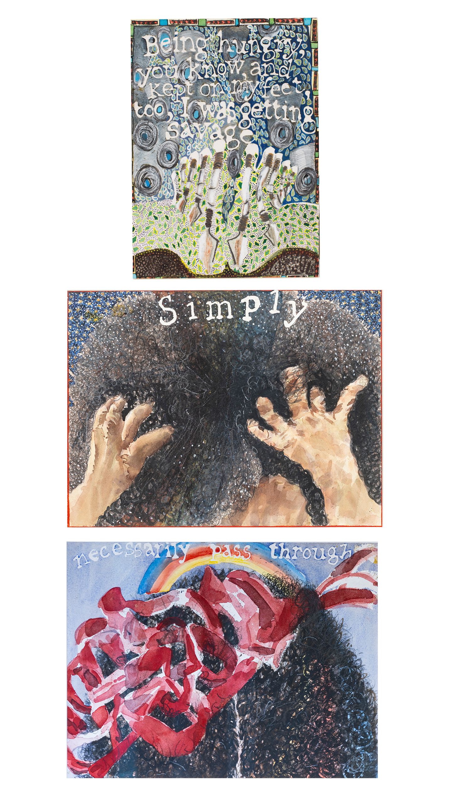 Left: I Will Keep my Soul, Centre: Blue Notes, Right: Awakened by Helen Cammock. Courtesy of the artist and Kate MacGarry, London