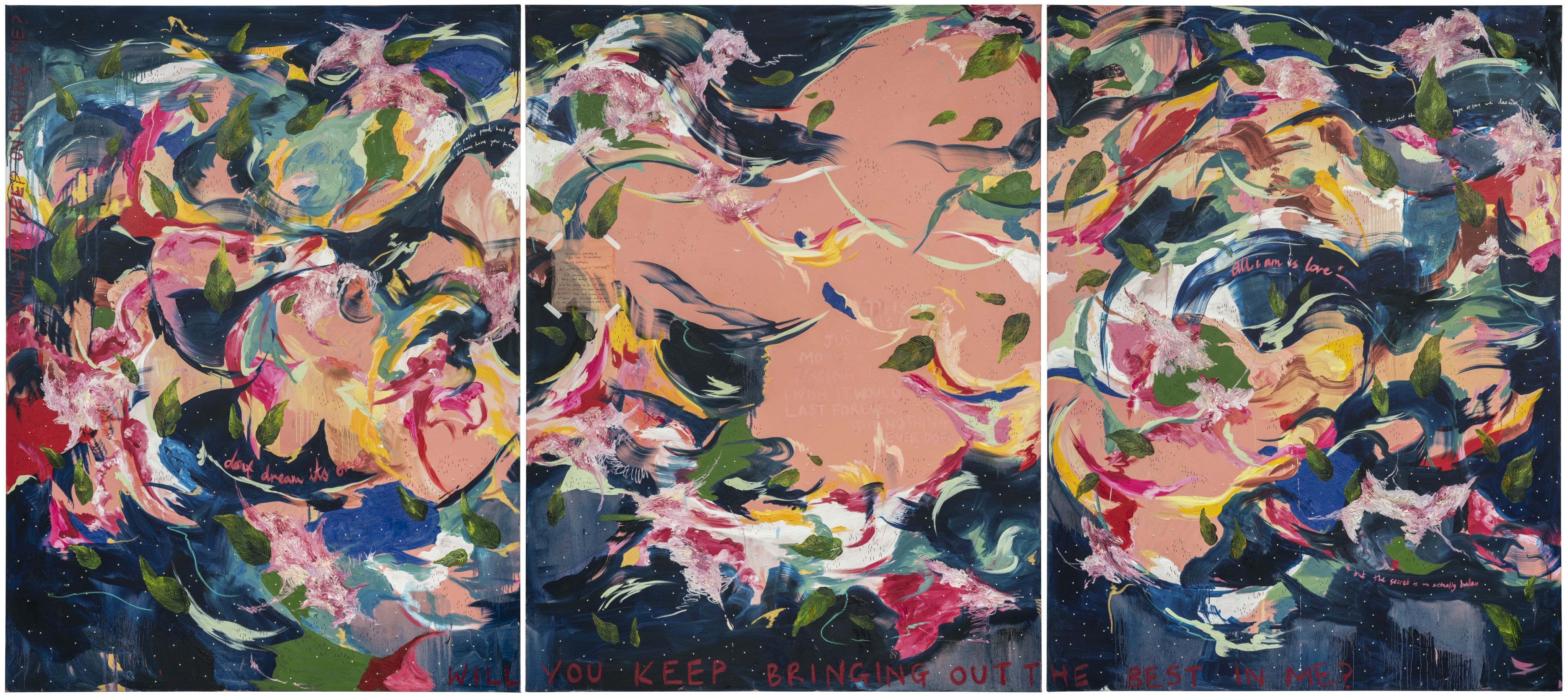 All I am is everything and nothing at all, oil, pastels, ink and beads on canvas, 2022