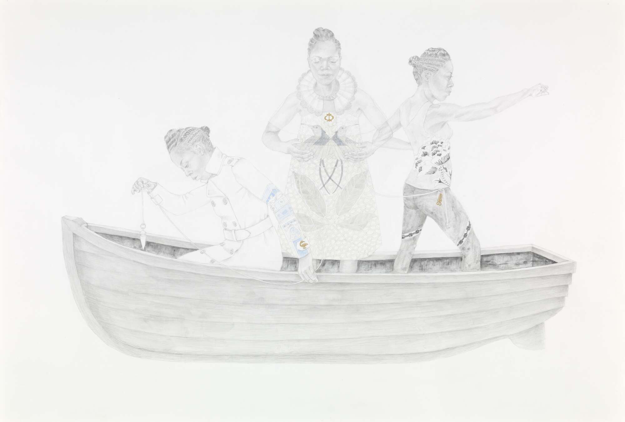 The Passengers, Pencil, graphite powder, coloured pencil and 22.9 karat gold on paper, 2020