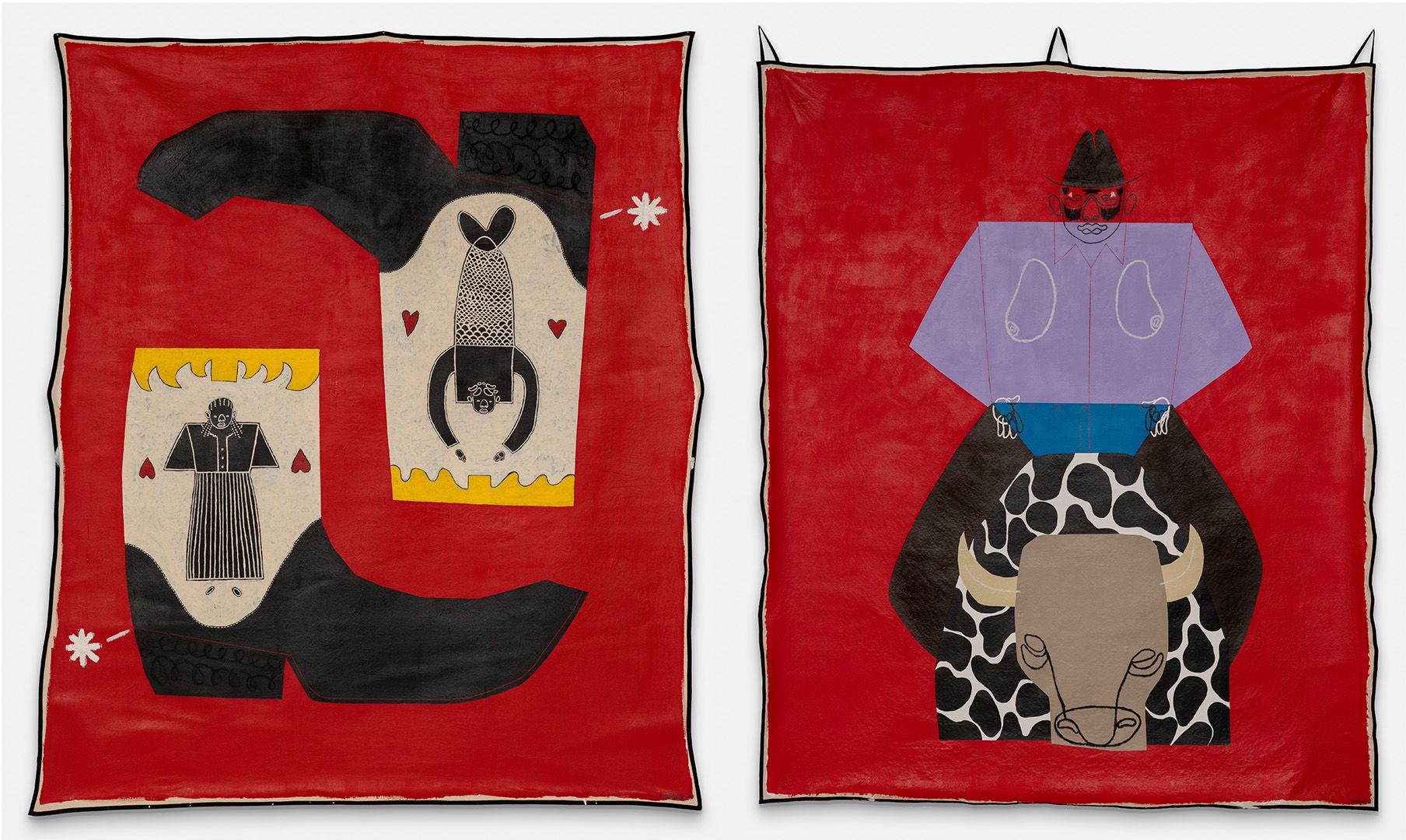 Left: Two Faced Boot, Remember Me - Rodeo King by Joy Yamusangie. Courtesy of the artist